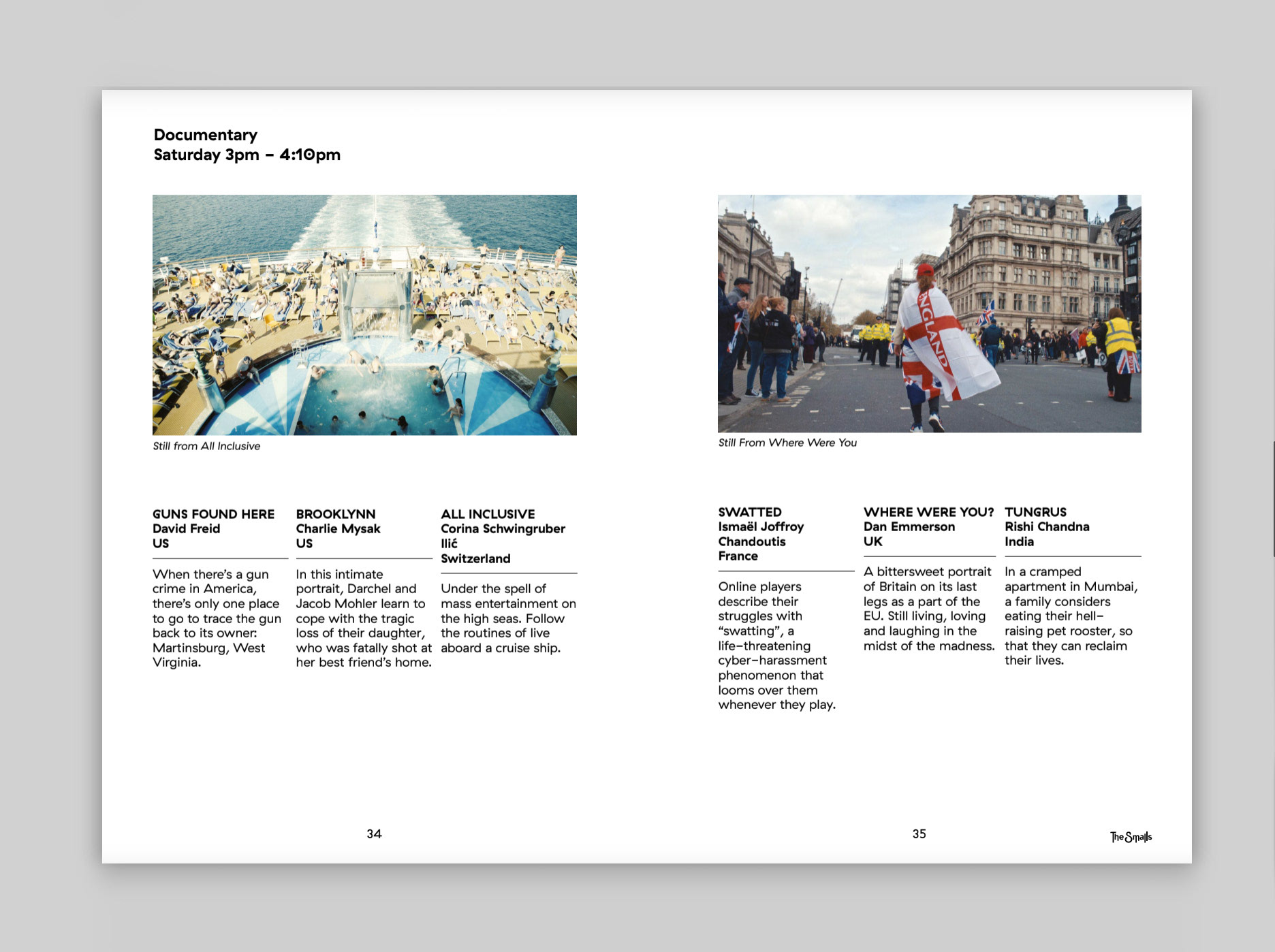 Examples of spreads from the 2019 The Smalls film Festival programme